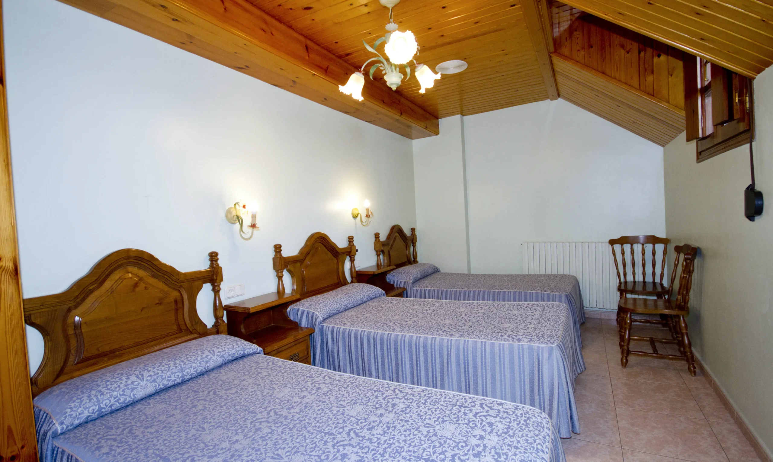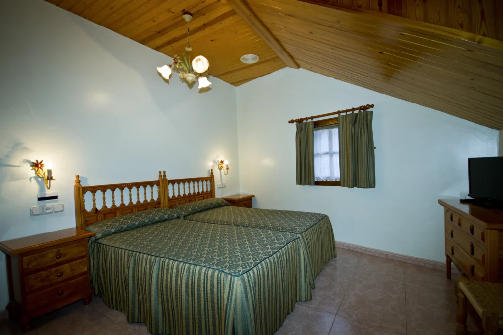 Con opción entre una cama de matrimonio de 1.35cm o dos de 90cm.
